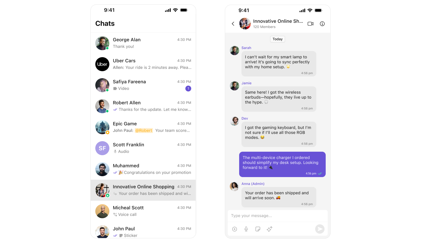 The UI Kit comprises a variety of components, each designed to work seamlessly with one another to deliver a comprehensive and intuitive chat experience. Here’s how different UI Kit components work together to achieve CometChat’s Core features:
